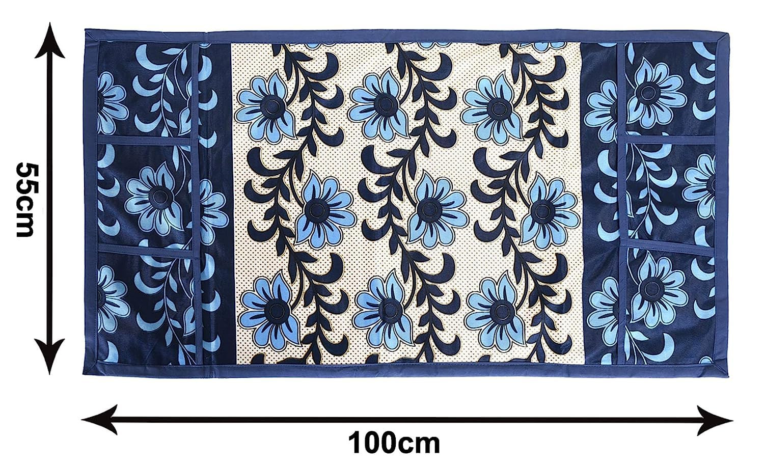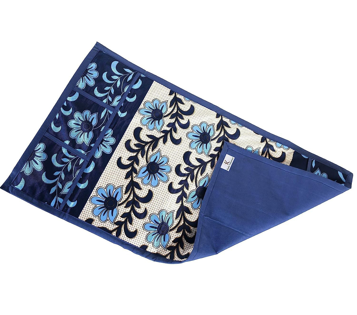 Tiksha Enterprises Floral Print Fridge Cover With Side Pockets|Fridge Top Cover|Refrigerator Single Door Cover|Washable Cotton Material|6 Utility Pockets Cream & Blue