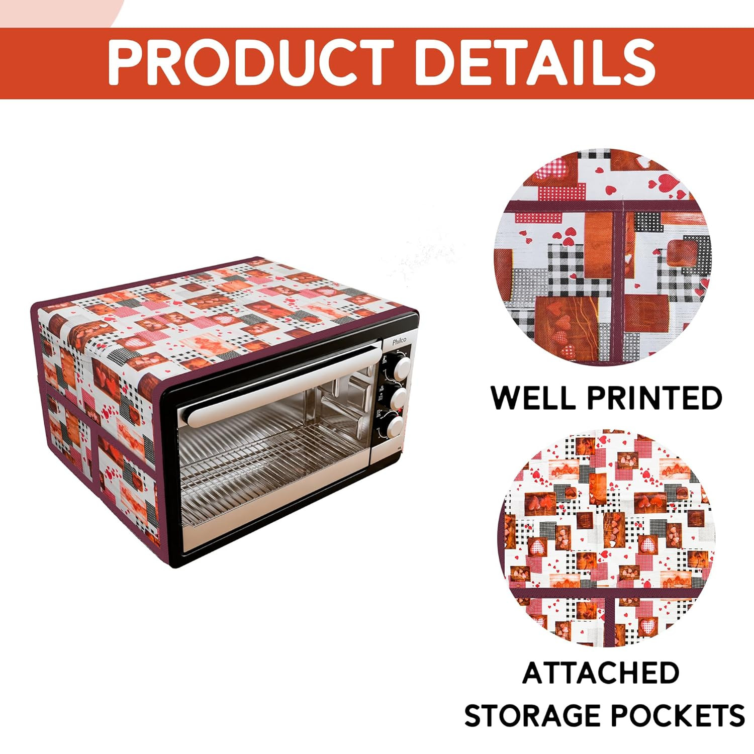 •  Attached Storage Pockets - This convection & OTG microwave food cover has additional storage pockets that allows you to store oven related or even small kitchen items for better organization and ease of access