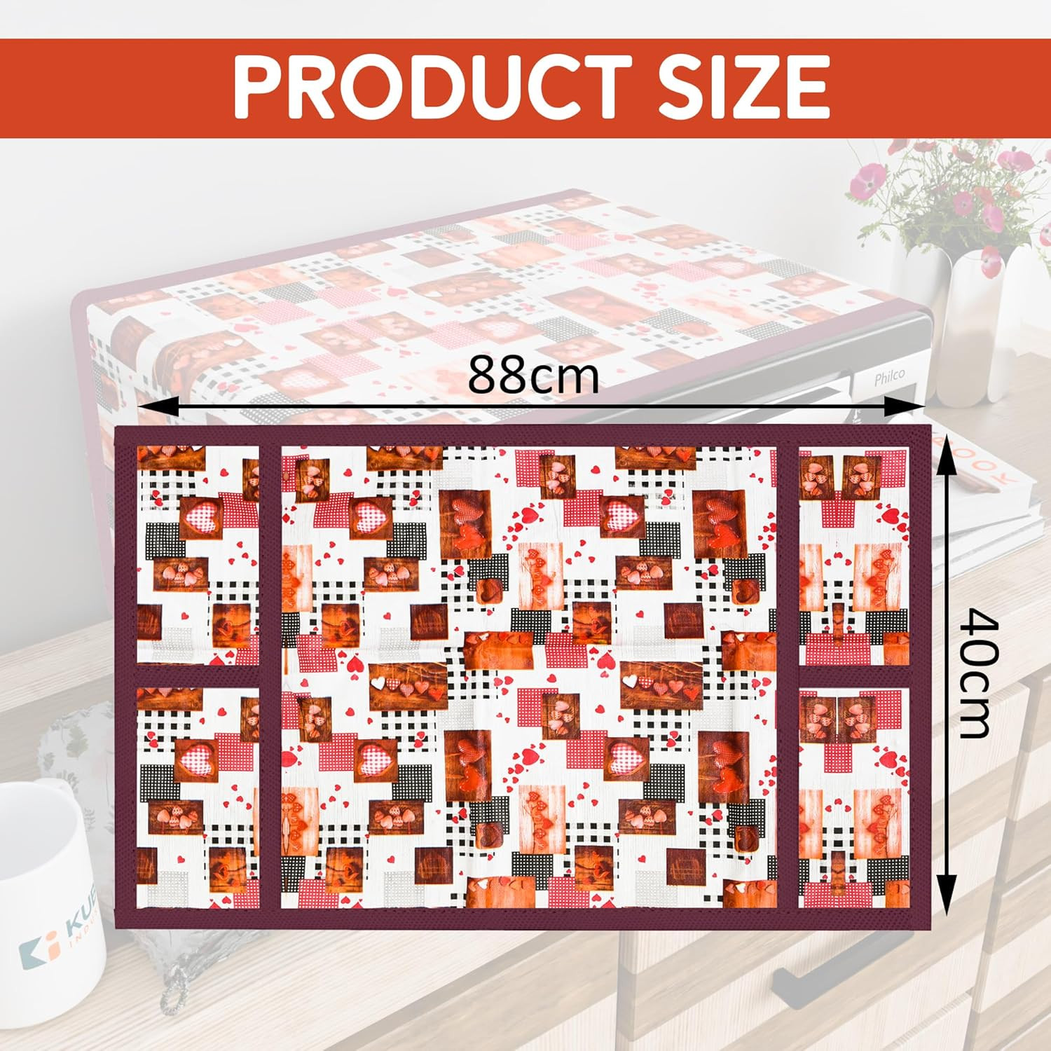 •  Package Contains - (Set of 1) Oven Top Cover | Color - Dil Check White | Material - PVC | Product Dimensions - 90 cm x 40 cm x 1 cm