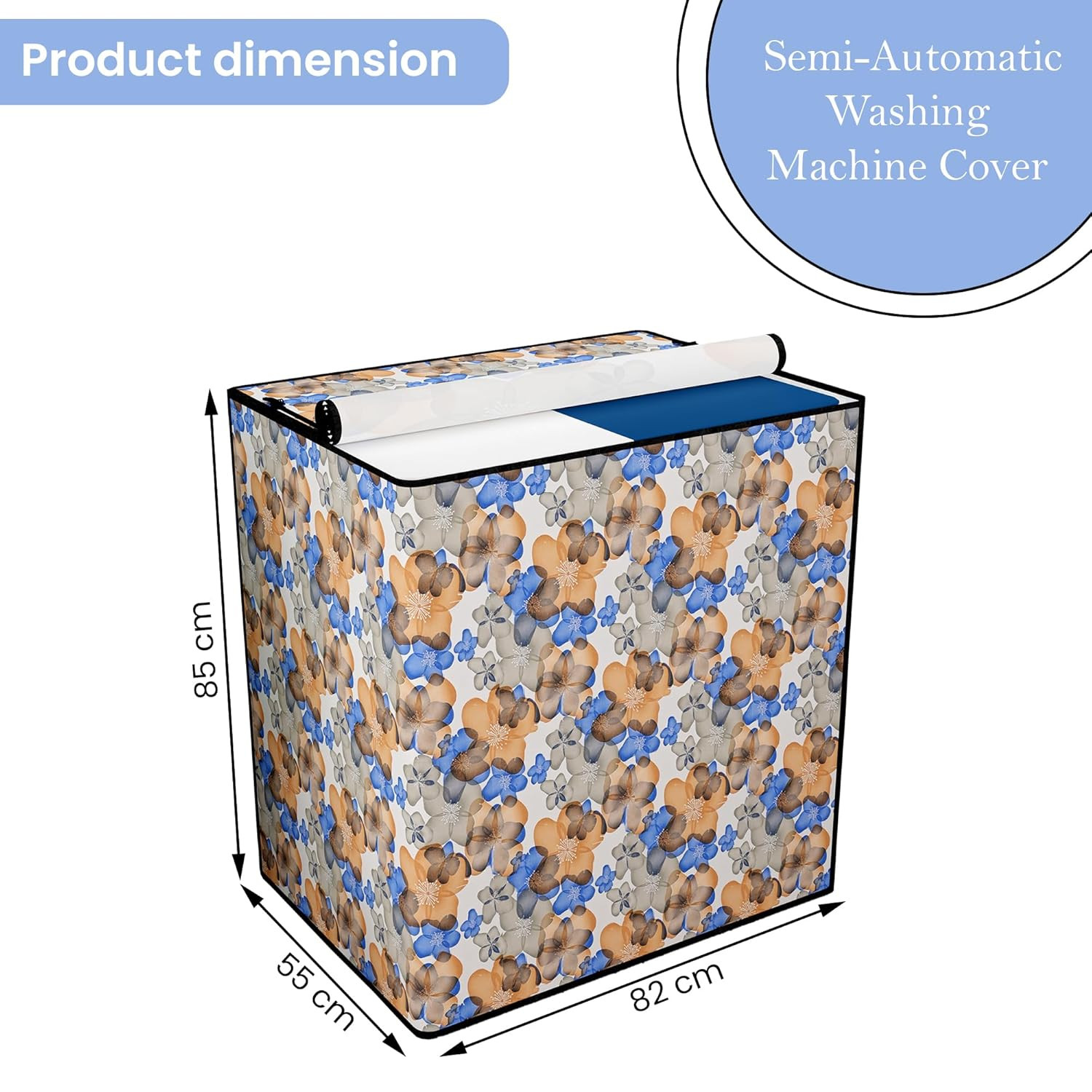 Package Contains - (1 Pcs) Semi Washing Machine cover | Color - White Blue Multi Flower | Material - PVC | Product Dimensions -82 cm x 55 cm x 85 cm